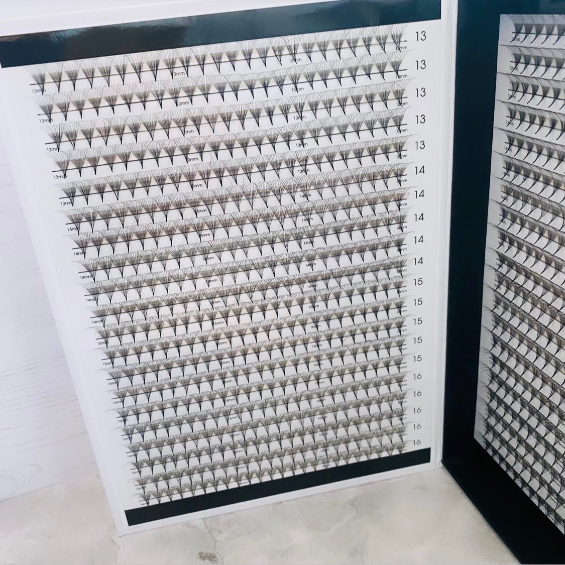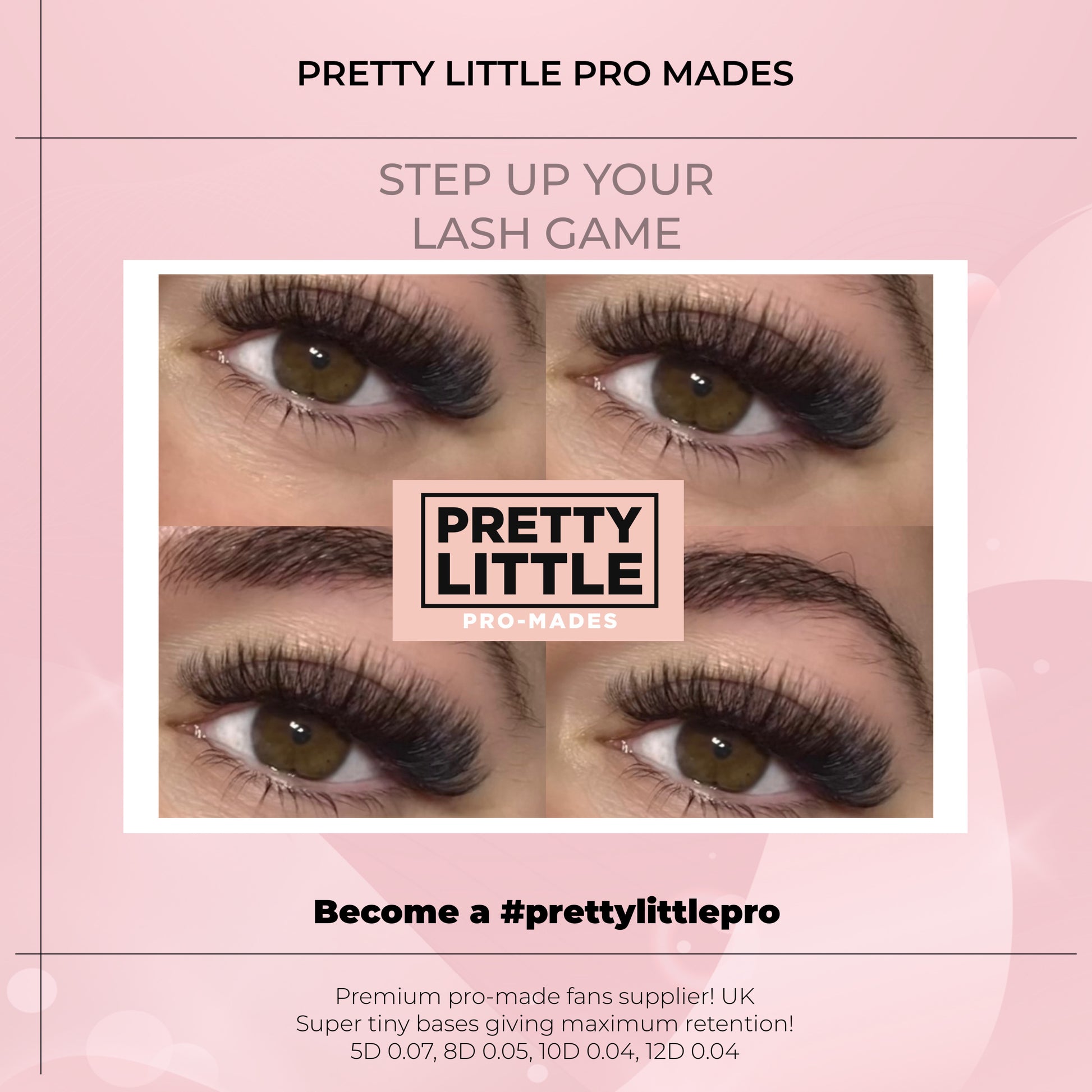 12D 0.04 Pro-Made fans. These can be used to create a full/mega volume set of lashes.